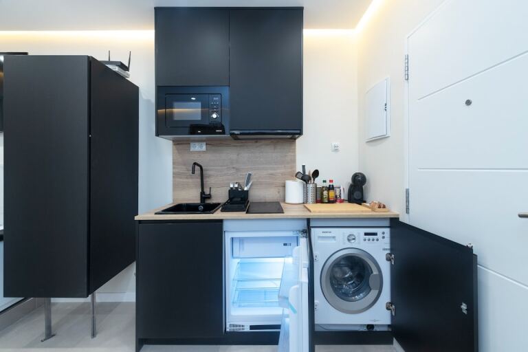 Situado en el corazón vibrante de la ciudad, este encantador estudio loft ofrece una combinación perfecta de encanto vintage y comodidad moderna, creando un espacio único y acogedor para sus huéspedes. La decoración retro cuidadosamente seleccionada llena el ambiente de carácter y personalidad, con detalles que evocan una sensación de nostalgia y estilo, mientras que las instalaciones contemporáneas aseguran una estancia cómoda y práctica. La zona de descanso cuenta con un mobiliario elegante y funcional que invita a relajarse después de un día explorando la ciudad, proporcionando un refugio íntimo y lleno de confort. La cocina, completamente equipada con electrodomésticos modernos y utensilios de calidad, permite preparar comidas caseras con facilidad, ideal para aquellos que disfrutan de cocinar o simplemente desean disfrutar de una taza de café en un entorno encantador. Además, el punto destacado de este estudio es su jacuzzi privado, un oasis de relajación donde los huéspedes pueden sumergirse en burbujas y dejar atrás el estrés del día, disfrutando de momentos de tranquilidad en la privacidad de su propio espacio. La iluminación cálida y los detalles decorativos cuidadosamente elegidos crean un ambiente romántico y acogedor, perfecto para parejas que buscan una escapada especial. La ubicación privilegiada permite acceder fácilmente a los principales lugares de interés, restaurantes, tiendas y zonas culturales, haciendo que cada momento en la ciudad sea memorable. Este estudio loft es la opción ideal para quienes desean vivir una experiencia diferente, llena de carácter y confort en un entorno único. Ya sea para una escapada romántica, una aventura urbana o simplemente para desconectar en un espacio con estilo, este alojamiento ofrece todo lo necesario para una estancia inolvidable. Con su combinación de detalles vintage y comodidades modernas, garantiza una experiencia auténtica y confortable en el corazón de la ciudad.
