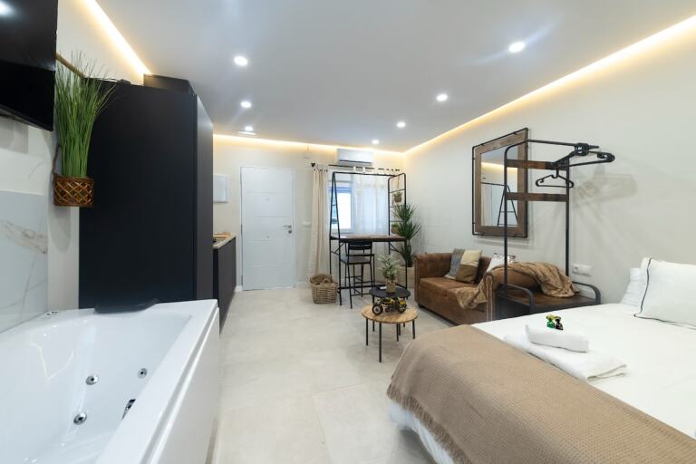 Situado en el corazón de la ciudad, este estudio loft combina encanto vintage con comodidad moderna. La decoración retro crea un ambiente acogedor y lleno de carácter, mientras que el jacuzzi privado invita a relajarse. Cocina equipada y zona de descanso con estilo hacen de este espacio una escapada romántica y única. Perfecto para parejas que buscan una experiencia diferente y memorable.